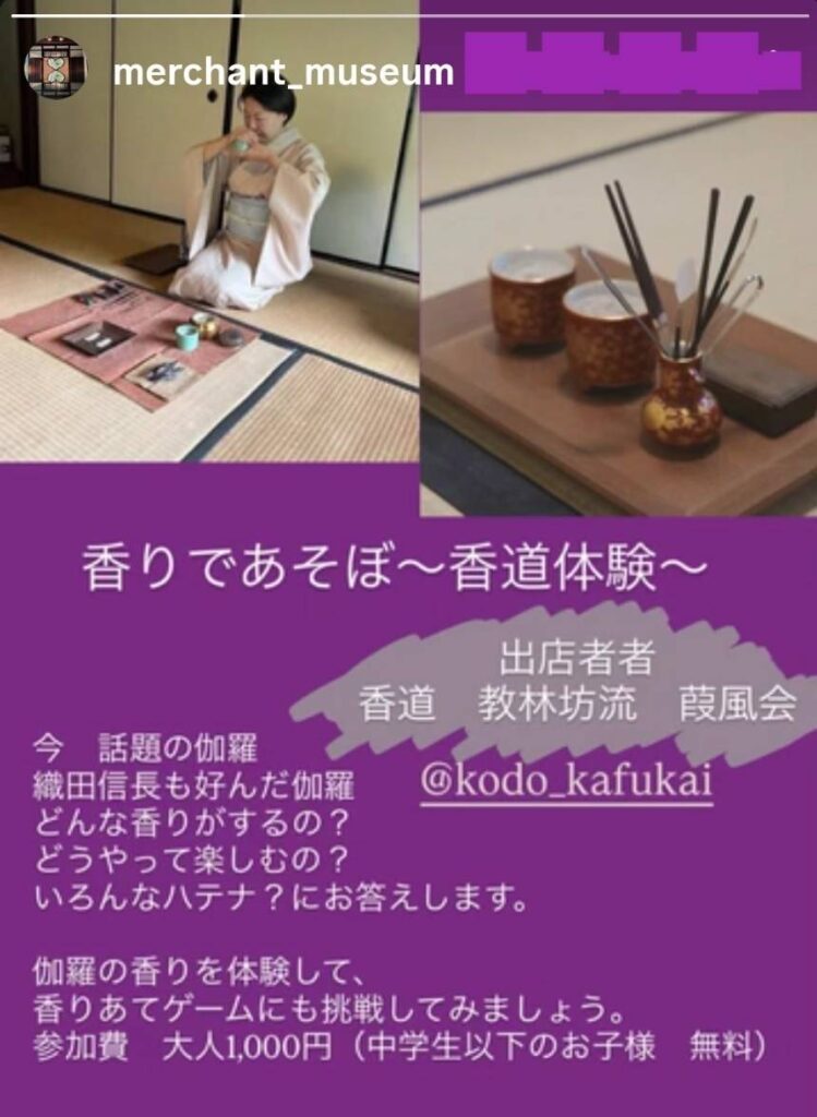 ・13:30~ 香道体験(講師:教林坊 流葭風会 早川光菜先生)