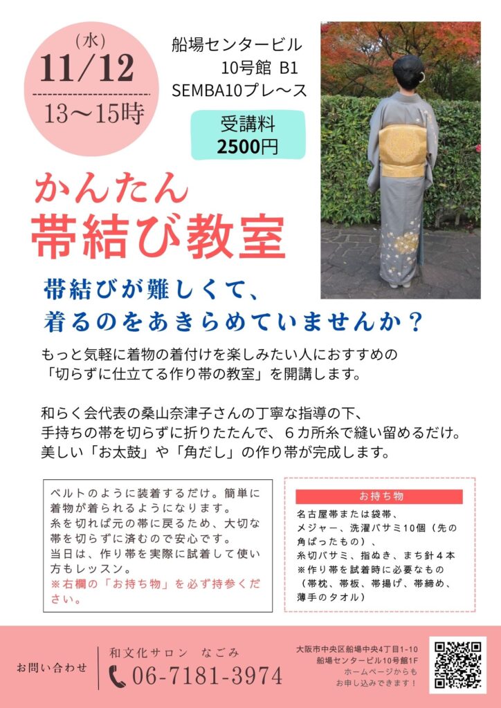簡単帯結び教室 2025 11/06 2025年11月2日2025年11月6日 イベント詳細 日付: 2025年11月12日 1:00 PM – 3:00 PM カテゴリ: 和文化教室/サロン *船場センタービルB1 SEMBA10プレ~スで行います お問合せ・お申込み TEL Mail よかったらシェアしてね! URLをコピーしました! URLをコピーしました! 民謡教室 新やまと文字体験会(おもてなし書道)